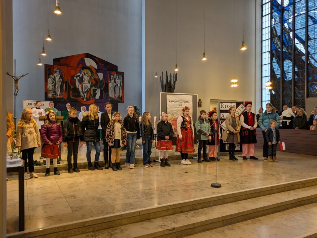 16 listopada podczas uroczystej Mszy Świętej za Ojczyznę wysłuchaliśmy programu słowno-muzycznego przygotowanego przez uczniów Polskiej Szkoły Sobotniej. Występ w piękny sposób podkreślił wartości patriotyczne i znaczenie polskiej tradycji.